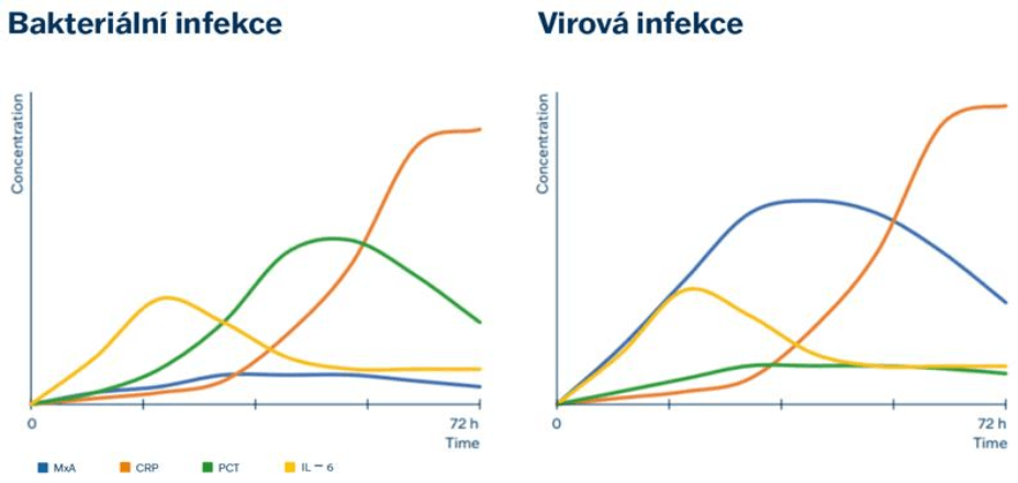 Na rozdiel od CRP, ktoré reaguje predovšetkým na bakteriálne zápaly, MxA umožňuje rozlíšiť vírusovú a bakteriálnu etiológiu už v ranej fáze ochorenia.