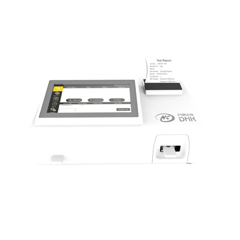 Analyzátor nabízí vestavěnou standardní křivku pro semi-kvantitativní vyhodnocení, automatickou identifikaci testovací kazety, automatický tisk výsledků, podporu LIS konektivity, interní paměť pro ukládání tisíců výsledků a export dat přes USB. Díky dotykovému LCD displeji a integrované tiskárně zajišťuje přesnou, standardizovanou a rychlou interpretaci výsledků, omezuje subjektivní chyby při odečtu a přispívá k efektivnějšímu laboratornímu workflow.
