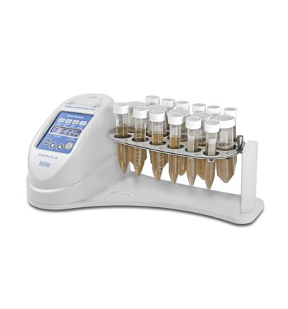 Programovatelný rotátor Multi Bio RS-24 provádí několik typů pohybů v jednom modulu. Mikroprocesorové řízení umožňuje provádět nejen vertikální rotaci (1) plošiny, ale také vzájemnou rotaci (2) a vibrace (3).