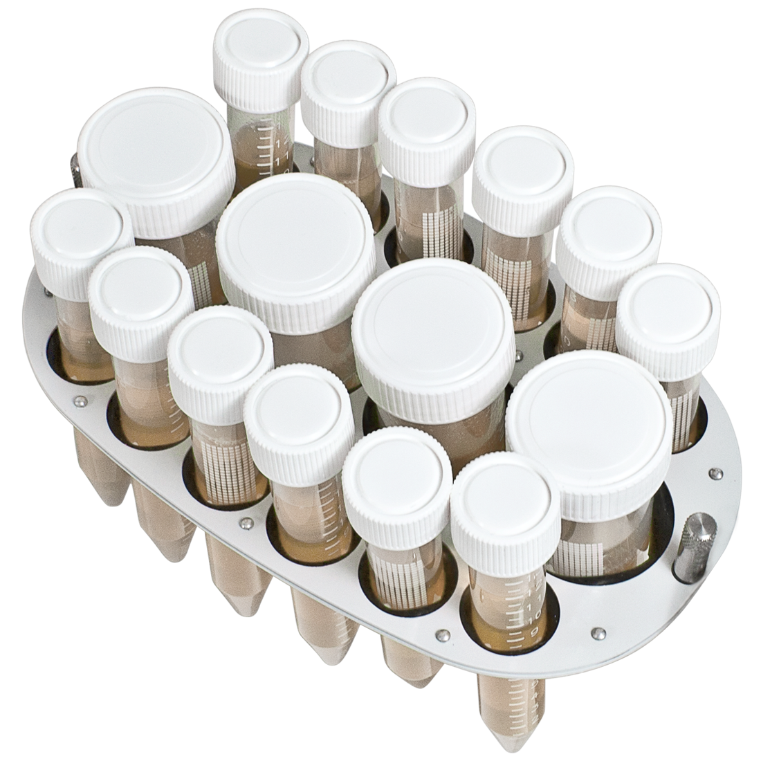 Pojme 4 zkumavky o průměru 20-30 mm (až 50 ml zkumavky) a 12 zkumavek o průměru 10-16 mm (1,5 ml - 15 ml zkumavky).