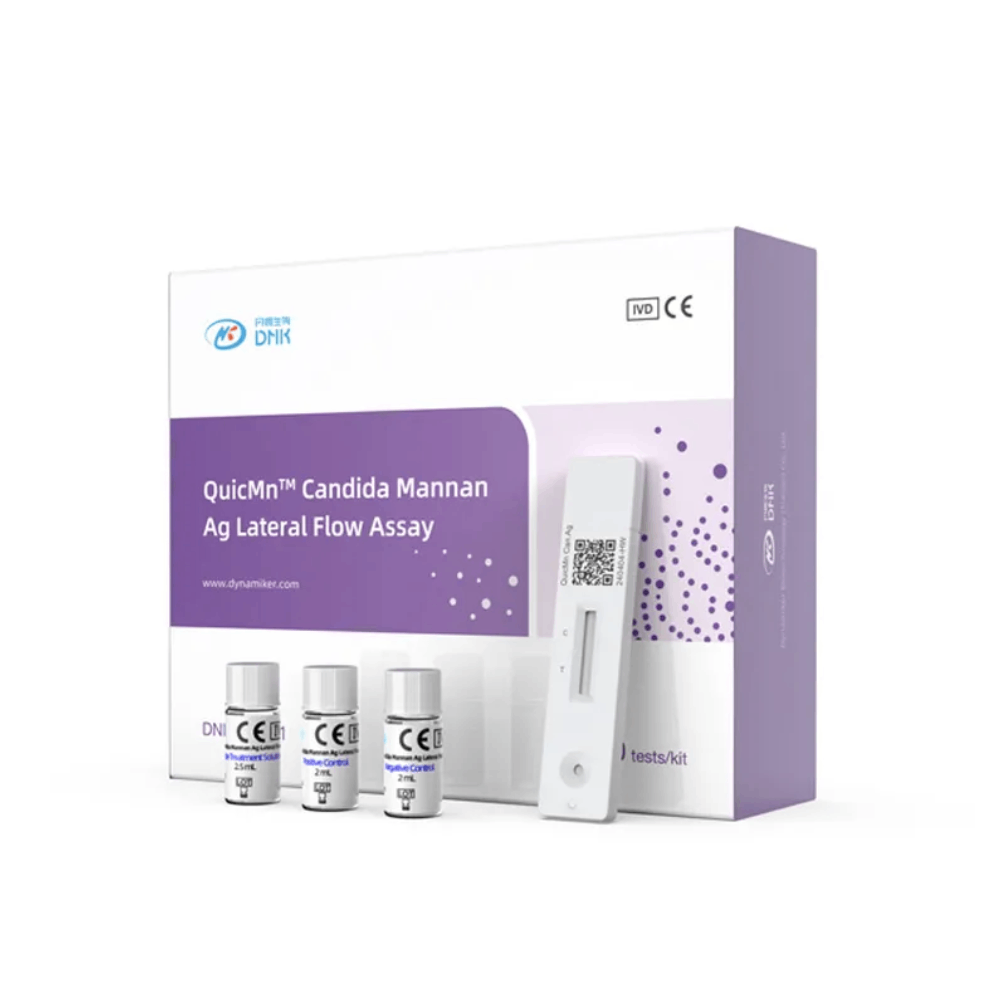 QuicMn Candida Mannan Ag Lateral Flow Assay je in vitro diagnostický test založený na principu fluorescenční imunochemické detekce, určený k detekci Candida mannanového antigenu v lidském séru. Test slouží jako pomocný nástroj při diagnostice invazivních kandidóz a dalších závažných infekcí způsobených Candida spp.