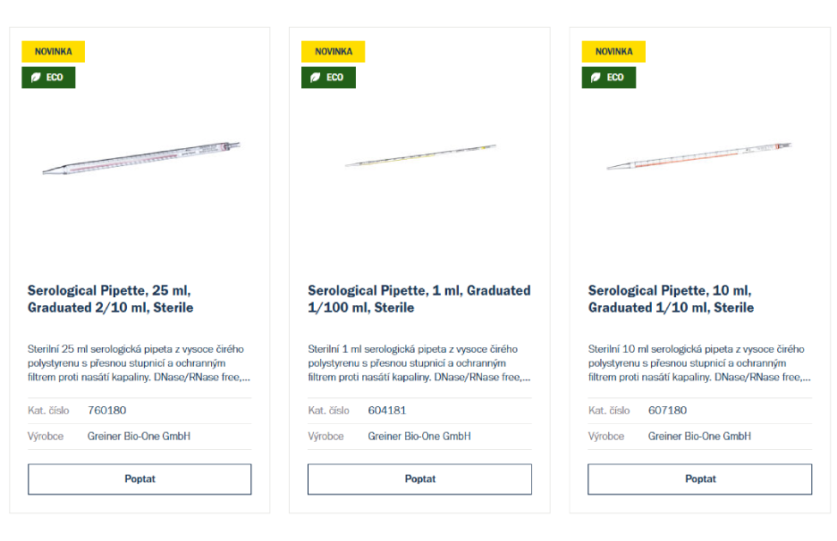 Greiner Bio-One sa v tejto kategórii stáva výrobcom s najnižším environmentálnym dopadom serologických pipiet. Na balenie pipiet využíva kartóny vyrobené z 99 % recyklovaného materiálu.